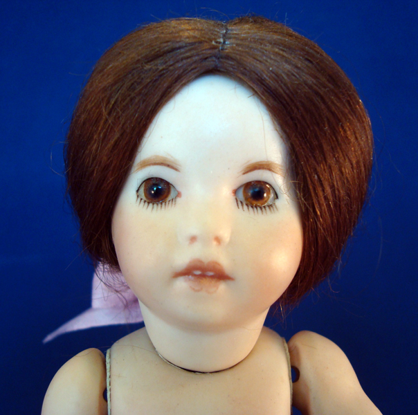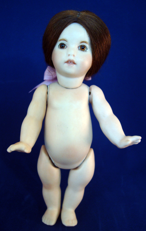 All the antique little pocket dolls are such a delight to see. They were first reproduced in France in about 1860, then later produced in Germany, Japan, then later in the United States. These dolls are all bisque and their sizes range from a tiny one inch to fifteen inches tall. Doll Reference gives a good overview of these delightful little dolls. The reproduction dolls such as Twirp#1, copied from the antique dolls, are smaller than the originals due to shrinkage of the porcelain. Many of these little all bisque dolls are available here.