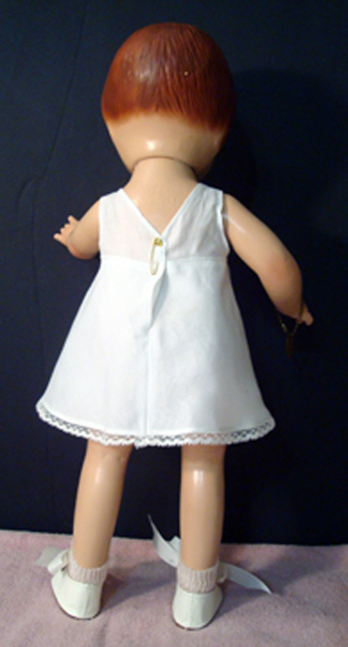 Patsy Doll Combination Underwear appropriate for all your 1930’s little girl dolls. This is the basic underwear that came with all Patsy’s dresses. It will fit the Effanbee Patsy dolls as well as most dolls of the same size, with a similar body. The underwear combines a chemise, panties, and slip, all in one. Made of 100% Cotton Batiste or Lawn, this underwear closes in the back with vintage square snaps, and comes trimmed with cotton lace. This Patsy doll underwear fits perfectly under her short little dresses.
